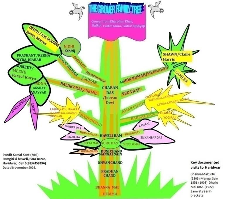 My father, Lala Charan Dass Grover, came from a Punjabi family originating in Ucchian Kharolian, in the district of Sialkot—then part of India and, since 1947, in Pakistan. Our family history in Ucchian Kharolian can be traced back to at least 1746