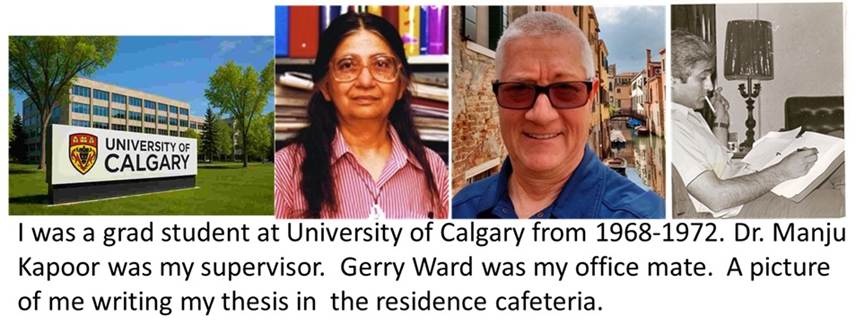I applied to several universities in the USA and Canada for admission to graduate school. Coming from a low income family, I needed both – the admission and a full scholarship. The University of Calgary not only offered me admission and a scholarship but also had a laboratory whose research was directly in my area of interest. In 1968, I was enrolled into a graduate program under Dr. M. Kapoor who was a good mentor. I travelled to Calgary on a Travel now pay later plan as I did not have money for the air ticket. My scholarship allowed me to clear the debt over time. One of the adjustments was the weather in Calgary. In Delhi, the temperature used to go up to 48oC in the summer. In Calgary, I saw snow for the first time and that year the temperature went down to minus 48oC. That did not matter as I was young.