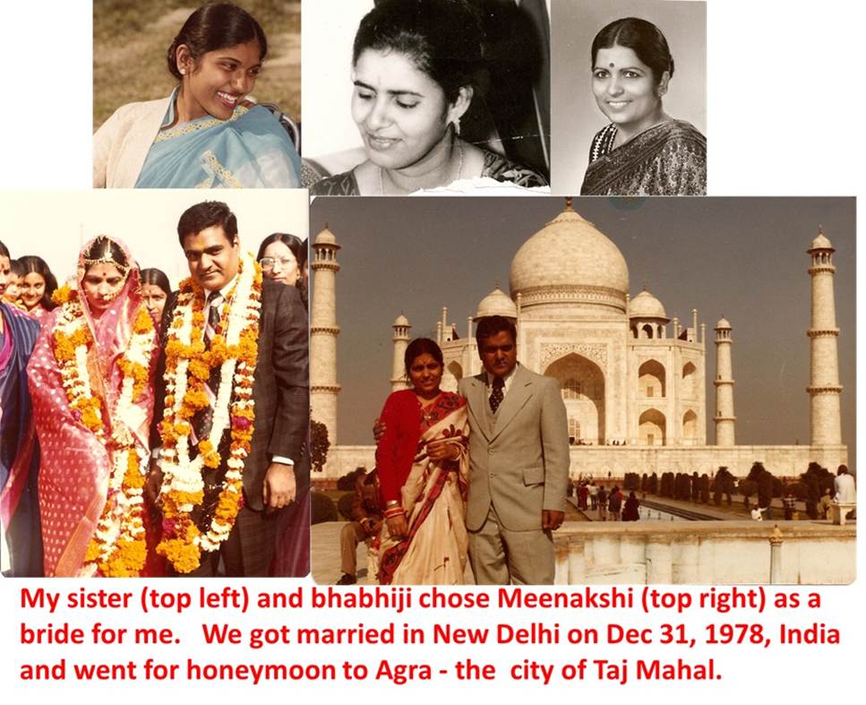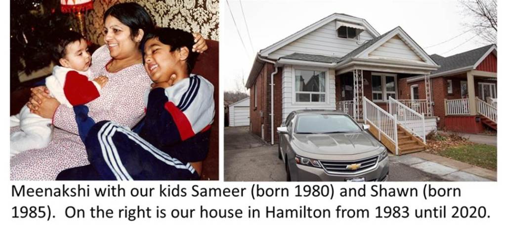 Marriage: After a few months at McMaster, I decided that it was time to get married. I asked my sister in India to find a bride for me. I had no idea what type of bride would suit me. I left the selection process to my sister and bhabhiji (my elder brother’s wife). I went to India in December. They met several families and selected a bride named Meenakshi. We got married on December 31. We spent a week together for our honeymoon in Agra – the city of Taj Mahal, and in getting all the documents together. I came back to Canada, sponsored my wife for immigration. She arrived in Canada on April 1, 1979. Obviously, my sister and bhabhiji had made the right selection since Meenakshi and I are still together. So, the marital chapter of my life began. We had two sons – Sameer in 1980 and Shawn in 1985. We also bought a house and thus got settled in 1983 in Hamilton.