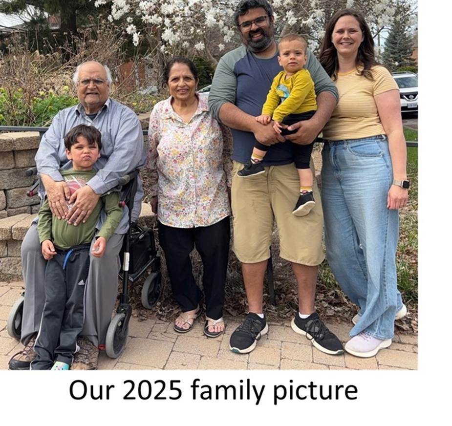 Shawn was well settled. One day he came home with a girl named Claire and put a ring on her finger in our presence and told mom that she had now witnessed their engagement ceremony. They were supposed to get married but Covid 19 got in the way. Shawn and Claire bought a house in Ottawa. In 2020 they took the oath of marriage in their back yard. Claire was pregnant and Meenakshi decided that we should move to Ottawa to be near them. In the middle of Covid 19, we sold our house in Hamilton and bought one close to Shawn and Claire’s place. We moved to Ottawa in April 2021. That is when we first met our three month old grandson Harris. In 2022, we attended Shawn and Claire’s formal wedding celebration. Harris began to visit us occasionally and then in 2023 our second grandson Malcolm was born.