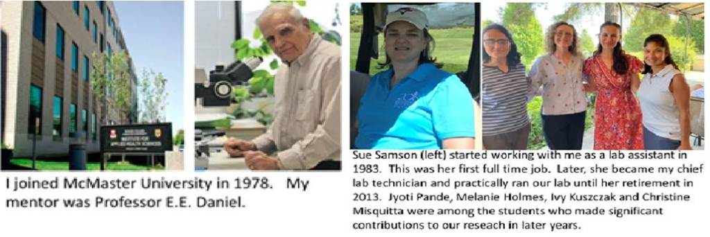 I was hired for my expertise on membranes and enzymes but this was an animal pharmacology lab. I had to learn some animal physiology and pharmacology concepts – remember my initial university education was in plant sciences. The lab researched on smooth muscle – something foreign to me so far. Initially, I worked on an ongoing project using rat uterine smooth muscle. I developed methods for membrane fractionation, enzyme marker assays and studying calcium ion (Ca2+) movement across the plasma membrane vesicles. I examined the properties of a Ca2+ – pump, and I also showed that these membranes had a sodium-calcium exchange system. This progress earned me a soft money faculty position. I started working on pig aorta and coronary artery to earn a Heart and Stroke Foundation scholarship which would contribute to my salary starting 1982. This salary contribution was renewed several times and continued until 2004.