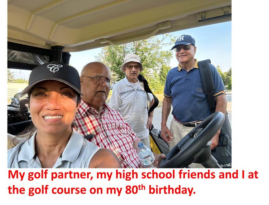 I received an e-mail from one of my high school classmates. It was my friend with whom I used to walk to school in grades 10 and 11. We had lost touch, but he tracked me. He told me that another classmate of ours was in Ottawa. My 70th birthday was a golf day but it included these two friends I had not met for 53 years. This initiated the process of meeting a few more classmates when I went to India that year. We had a good reunion and I made a video of Ramjas 2 -1962 class (https://www.youtube.com/watch?v=RHfuZpphzDc&t=13s).