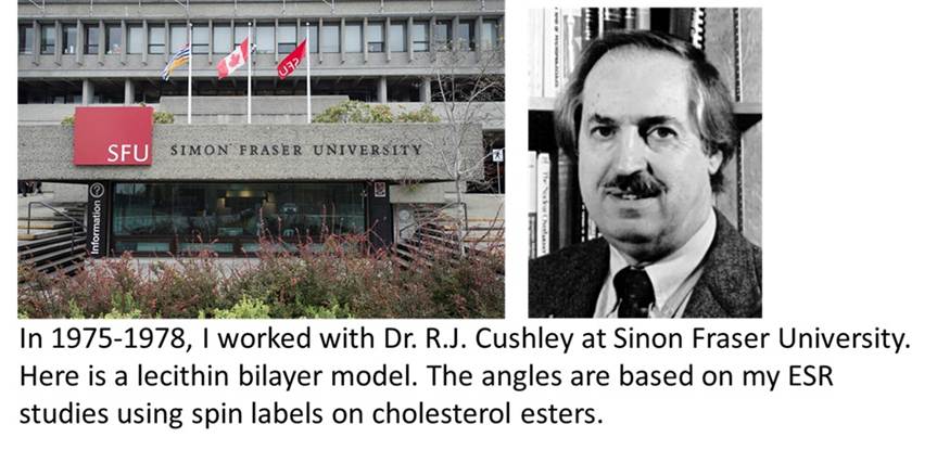 Dr. Cushley’s lab focused on magnetic resonance spectroscopy. However, they needed someone to work on enzymes and natural products. Here, I learned about 1H, 31P and 13C – NMR and ESR. I also isolated beta-D-galactosidase from almond emulsin with the idea of doing NMR studies of glycosides when bound to this enzyme. Based on my knowledge of physical biochemistry, I had calculated that the given project would be futile. I was told to go ahead anyway. It turned out to be interesting since it was a bifunctional enzyme. In another project, I syntheisized two cholesteryl ester ESR probes. Using them, I showed that the fatty acids in a lecithin bilayer were anchored in a specified angular manner.
