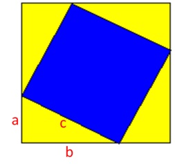 Proof: Area of the large square of side c = c2 and that of the internal square of side a-b = (a-b)2