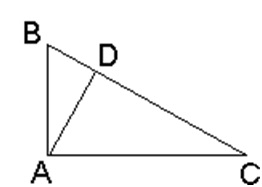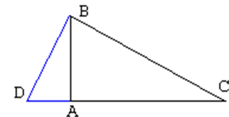 Construction: Let ABC and BED be identical right ∠ Δs, with point E lying on AB. Join points A and D to form the Δ ABD.