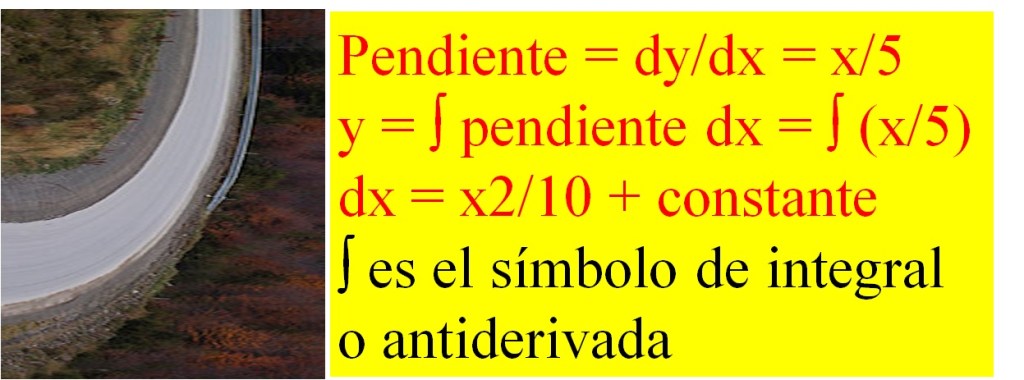 y = ∫ pendiente dx = ∫ (x/5) dx = x2/10 + constante