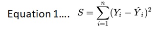 Sara : Ici, je trace des lignes rouges entre les valeurs réelles des dépenses (Yi) et les valeurs basées sur la ligne que vous avez tracée (Y^i). Les longueurs de ces lignes (Yi – Y^i) montrent comment ces valeurs s’écartent de la ligne. Étant donné que les carrés de ces longueurs seront tous positifs, le meilleur ajustement se traduirait par une valeur minimale de la somme de (Yi-Y^i)2 pour les 11 années (n) des données. Nous pouvons écrire cette somme S comme l’équation 1.