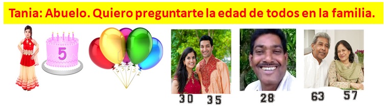 Tanya: Abuelo, quiero preguntarte la edad de todos los miembros de la familia. ¿Qué edad tiene mi madre?