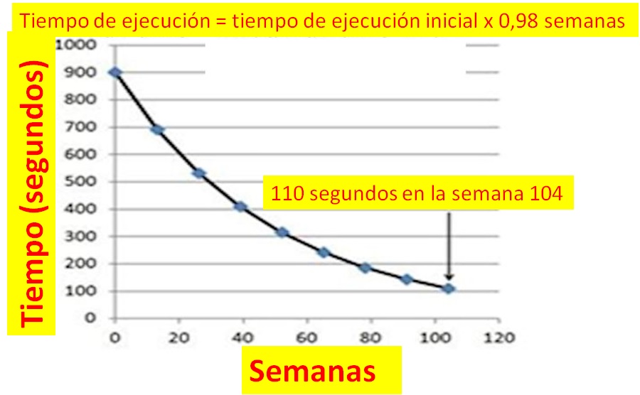 Tiempo de ejecución = tiempo de ejecución inicial x 0,98 semanas