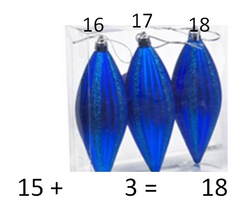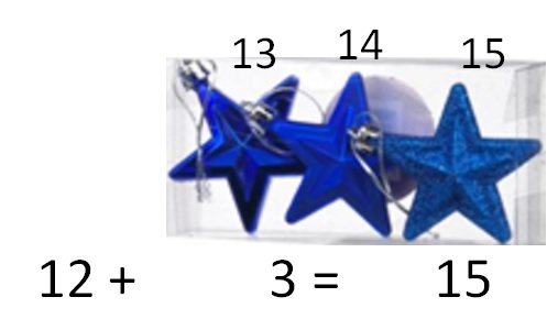 Dad: Yes, we have 3 stars. After 12 comes 13, then 14 and 15. So we have 15 ornaments on so far.