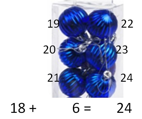 Joey put the 6 balls and then counted on his fingers and said, dad 18 + 6 is 24.