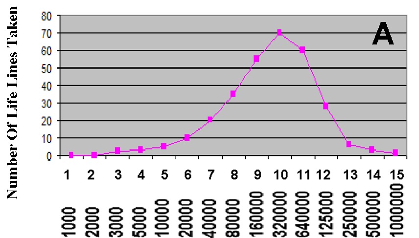 Tanya: My friend Tinku and I took 100 KBC contestants at random from You Tube and analyzed their use of Life Lines. The horizontal axis shows the levels of the questions and their monetary values in rupees. Graph A shows the total number of Life Lines used by the 100 players at the different levels.