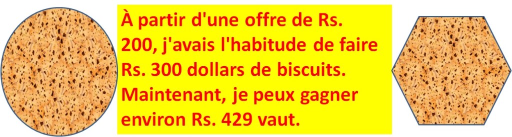 Lalu : Je pense que cela fonctionnera. À partir d’une offre de Rs. 200, j’avais l’habitude de faire Rs. 300 dollars de biscuits. Maintenant, je peux gagner environ Rs. 429 vaut. Si cela fonctionne, je pourrais fabriquer jusqu’à 10 plateaux de ce type par jour. Ensuite, chaque jour, Bholu et moi pouvions ramener de l’argent à la maison au lieu de nos longs visages. Merci Mani beti. Je ne sais pas pourquoi nous n’avons pas compris cela nous-mêmes.