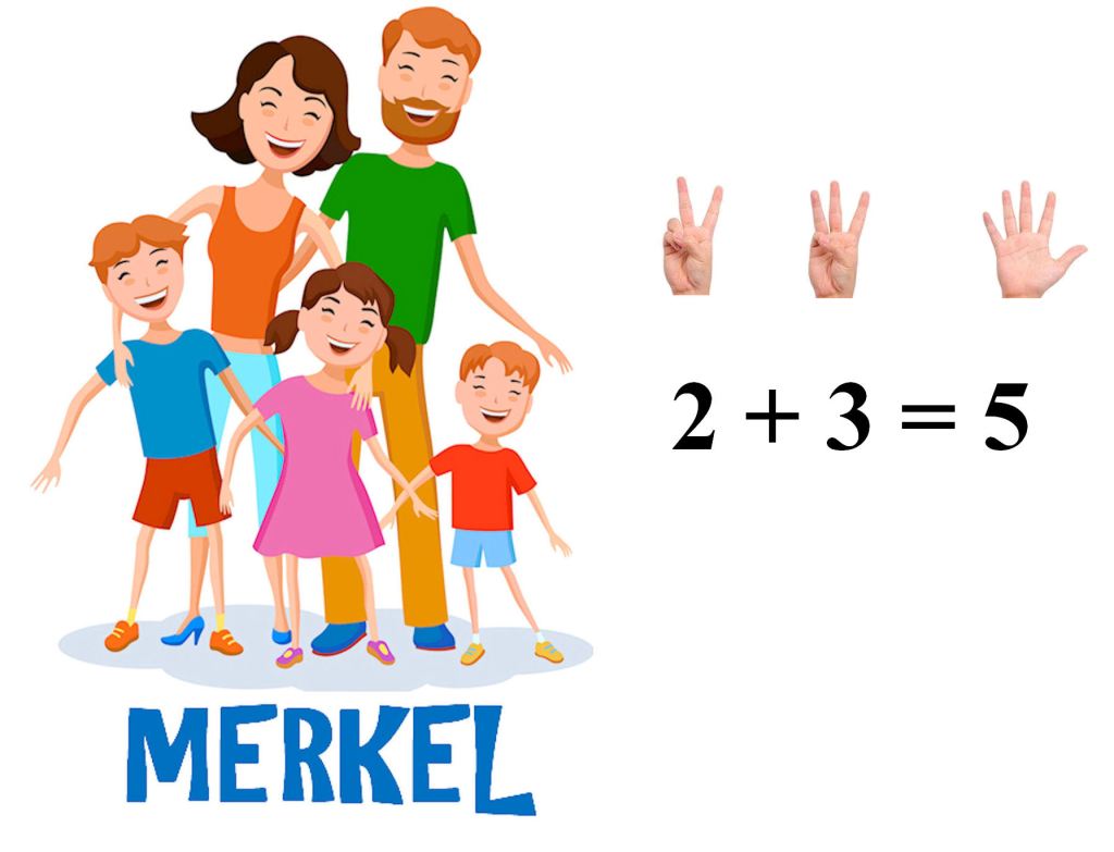 Émilie : D’accord. La maison d’angle appartient à la famille Merkel. M. et Mme Merkel ont trois enfants – une fille et deux garçons.