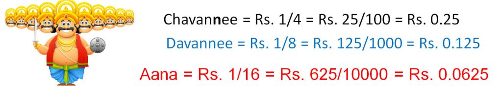 Puru : Davannee = Rs. 1/8 = roupies. 125/1000 = Rs. 0,125