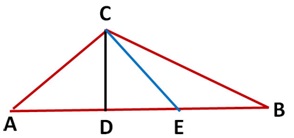 CD es perpendicular a AB, y las líneas AC y CE tienen la misma longitud. Identifica todos los triángulos agudos, de ángulo recto, obtusos, escualeno, isósceles y equiláteros en esta imagen. Tenga en cuenta que puede tener ninguno, uno o más de cualquier tipo. No se proporcionó ninguna solución para este desafío.