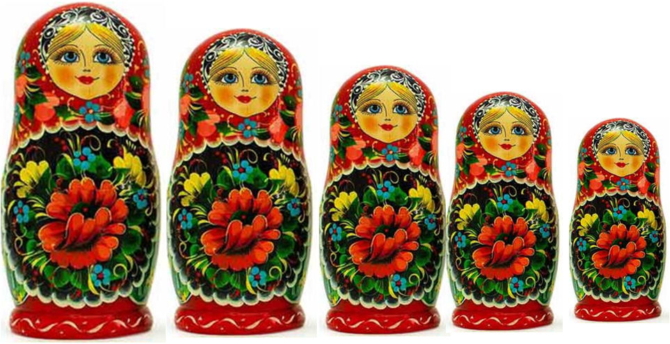 Elle ouvrit la poupée Babouchka. Il y avait une deuxième poupée à l’intérieur. Elle le sortit et referma la première poupée. Puis elle ouvrit la seconde et en sortit une troisième poupée. Elle a répété le processus deux fois de plus. Elle posa les cinq poupées sur la table.