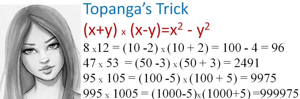 Topango : 112- 22 = (11+2) x (11-2) est identique à (11+2) x (11-2) = 112- 22. Écrivez simplement ‘x’ au lieu de 11 et ‘y’ à la place de 2. Alors ça devient la preuve qu’elle voulait. Nous l’avons fait! Nous sommes des génies.