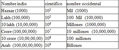 | 10 lakh (10,00,000) | 106 | Millones (1000,000) |